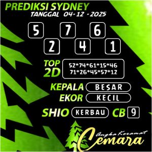 Prediksi ANGKA KERAMAT SYDNEY 04 DESEMBER 2025 berdasarkan dari Prediksi Cemara yang sudah diperhitungkan dengan sangat baik. Dengan perhatian yang penuh untuk mendapatkan Angka yang tepat untuk Jackpot Dipasaran Sydney