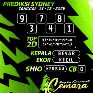 Prediksi  ANGKA KERAMAT SYDNEY 13 DESEMBER 2025  berdasarkan dari Prediksi Cemara yang sudah diperhitungkan dengan sangat baik. Dengan perhatian yang penuh untuk mendapatkan Angka yang tepat untuk Jackpot Dipasaran Sydney